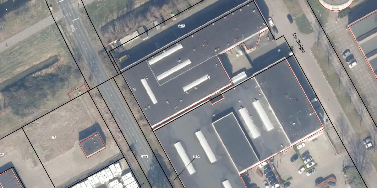 Het perceel waarop De Steiger 75-G-214 staat heeft een oppervlakte van 2896 m². Dit is een zeer groot perceel. De perceeloppervlakte wordt geregistreerd door het Kadaster. Gedetailleerde informatie over de maten van dit perceel kunt u vinden in het rapport Kadastrale kaart met maatvoering van De Steiger 75-G-214.