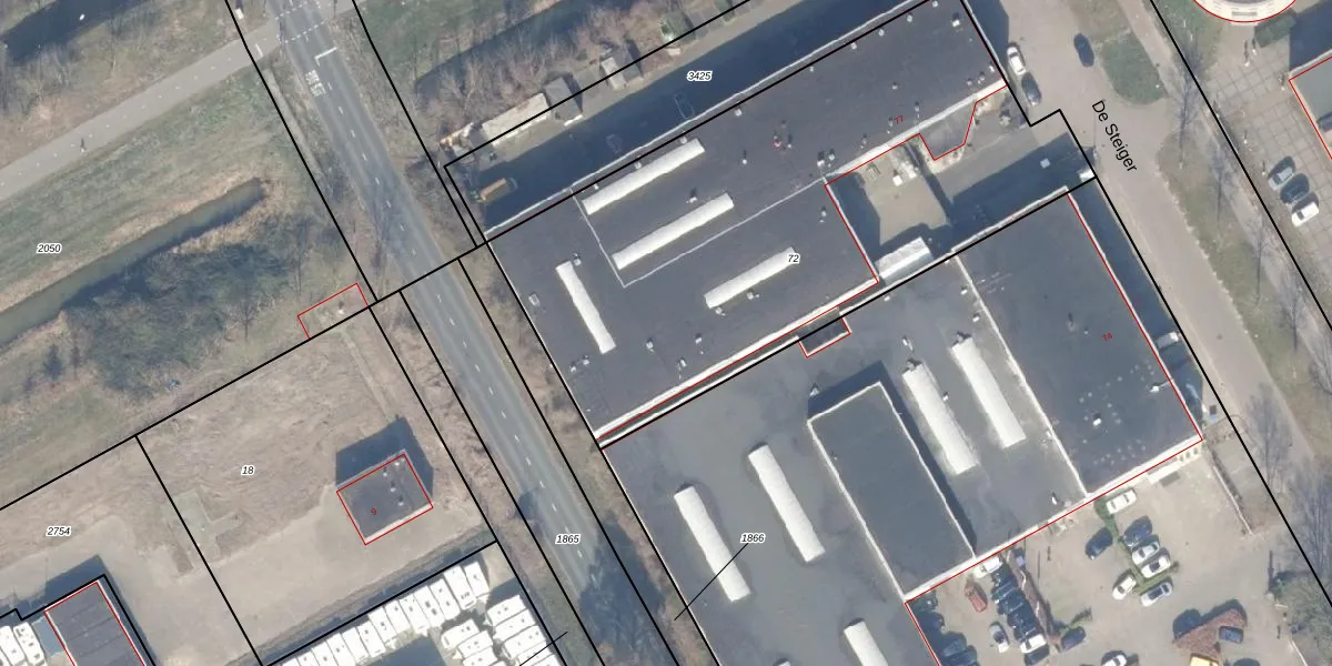Het perceel waarop De Steiger 75-G-218 staat heeft een oppervlakte van 2896 m². Dit is een zeer groot perceel. De perceeloppervlakte wordt geregistreerd door het Kadaster. Gedetailleerde informatie over de maten van dit perceel kunt u vinden in het rapport Kadastrale kaart met maatvoering van De Steiger 75-G-218.