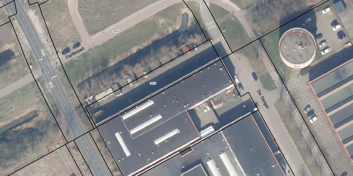 Het perceel waarop De Steiger 76-G-9 staat heeft een oppervlakte van 2896 m². Dit is een zeer groot perceel. De perceeloppervlakte wordt geregistreerd door het Kadaster. Gedetailleerde informatie over de maten van dit perceel kunt u vinden in het rapport Kadastrale kaart met maatvoering van De Steiger 76-G-9.