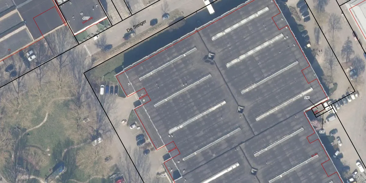 Het perceel waarop De Steiger 83 staat heeft een oppervlakte van 2,0 ha. Dit is een zeer groot perceel. De perceeloppervlakte wordt geregistreerd door het Kadaster. Gedetailleerde informatie over de maten van dit perceel kunt u vinden in het rapport Kadastrale kaart met maatvoering van De Steiger 83.
