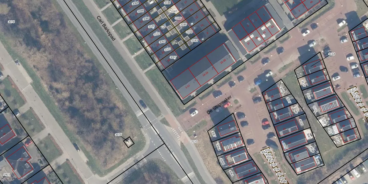 Het perceel waarop De Stripmaker 1 staat heeft een oppervlakte van 7530 m². Dit is een zeer groot perceel. De perceeloppervlakte wordt geregistreerd door het Kadaster. Gedetailleerde informatie over de maten van dit perceel kunt u vinden in het rapport Kadastrale kaart met maatvoering van De Stripmaker 1.