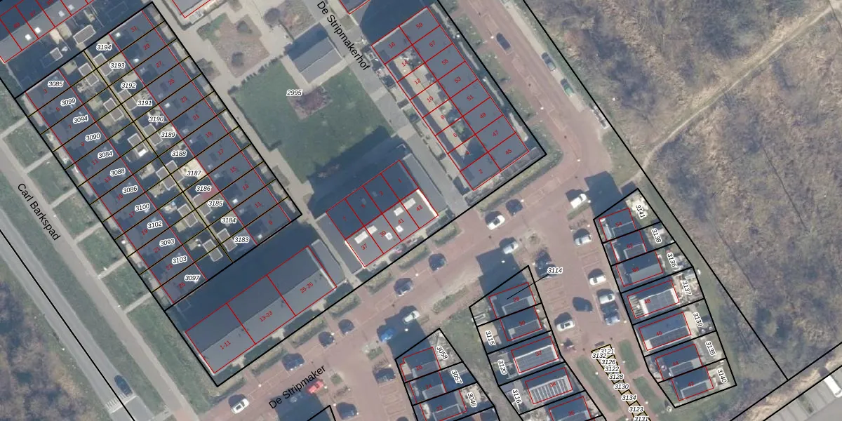 Het perceel waarop De Stripmaker 43 staat heeft een oppervlakte van 7530 m². Dit is een zeer groot perceel. De perceeloppervlakte wordt geregistreerd door het Kadaster. Gedetailleerde informatie over de maten van dit perceel kunt u vinden in het rapport Kadastrale kaart met maatvoering van De Stripmaker 43.
