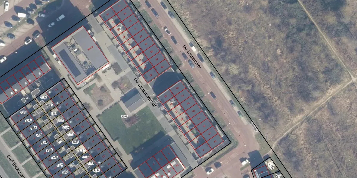 Het perceel waarop De Stripmaker 59 staat heeft een oppervlakte van 7530 m². Dit is een zeer groot perceel. De perceeloppervlakte wordt geregistreerd door het Kadaster. Gedetailleerde informatie over de maten van dit perceel kunt u vinden in het rapport Kadastrale kaart met maatvoering van De Stripmaker 59.