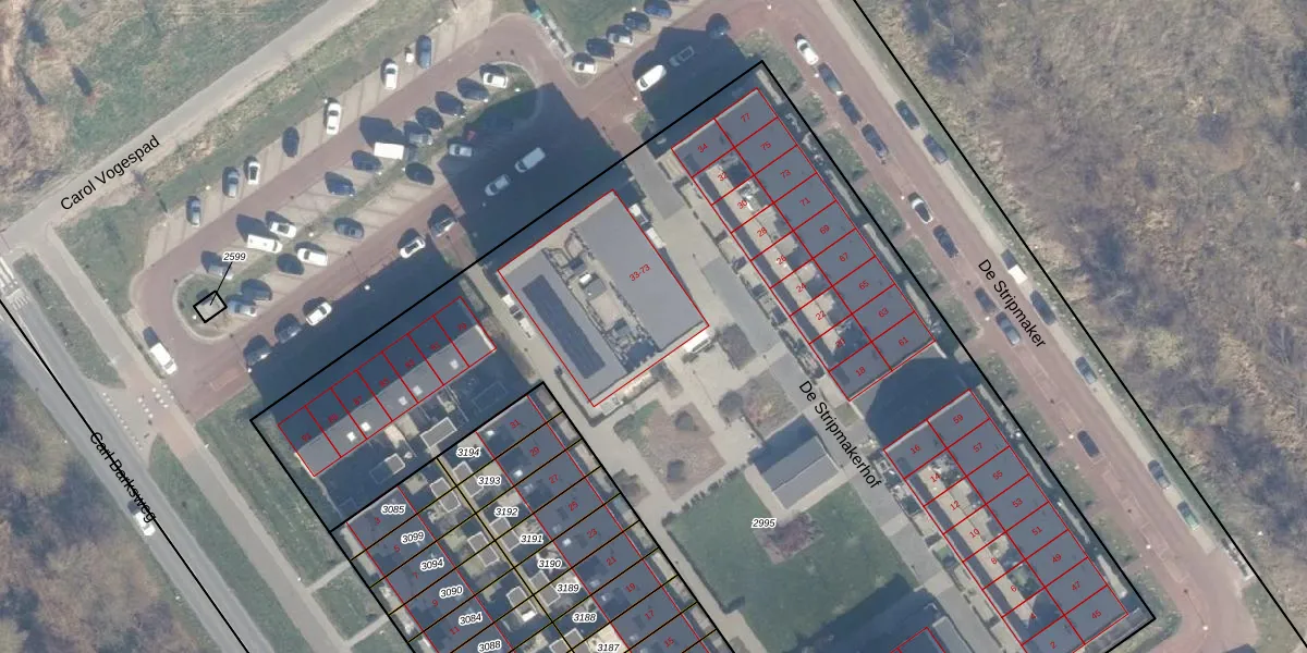 Het perceel waarop De Stripmakerhof 49 staat heeft een oppervlakte van 7530 m². Dit is een zeer groot perceel. De perceeloppervlakte wordt geregistreerd door het Kadaster. Gedetailleerde informatie over de maten van dit perceel kunt u vinden in het rapport Kadastrale kaart met maatvoering van De Stripmakerhof 49.