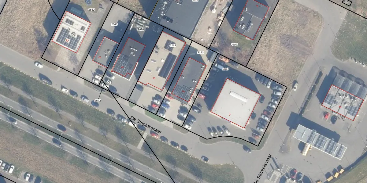Gebruik de zoekbalk of klik op een perceel voor informatie over de adressen binnen dit perceel.