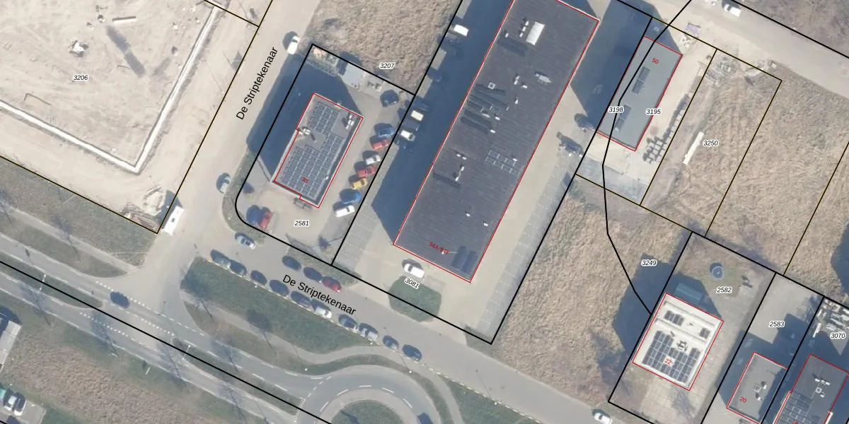 Het perceel waarop De Striptekenaar 34-B staat heeft een oppervlakte van 3610 m². Dit is een zeer groot perceel. De perceeloppervlakte wordt geregistreerd door het Kadaster. Gedetailleerde informatie over de maten van dit perceel kunt u vinden in het rapport Kadastrale kaart met maatvoering van De Striptekenaar 34-B.