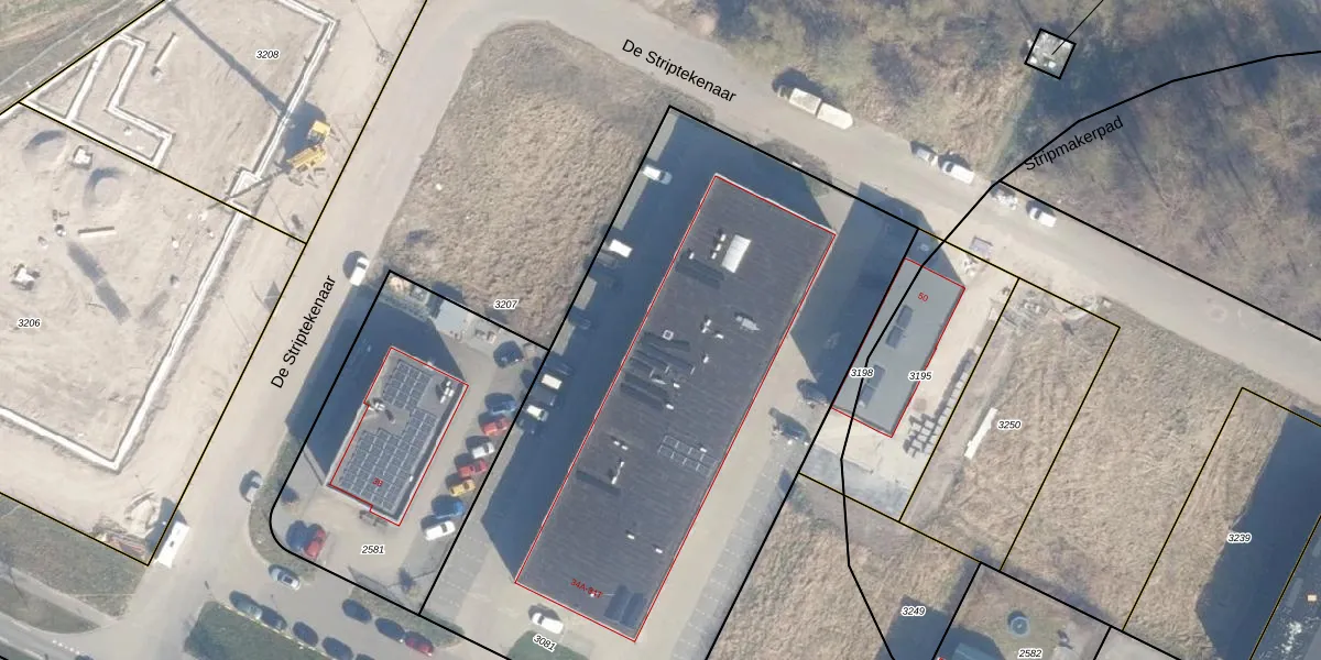 Het perceel waarop De Striptekenaar 34-G staat heeft een oppervlakte van 3610 m². Dit is een zeer groot perceel. De perceeloppervlakte wordt geregistreerd door het Kadaster. Gedetailleerde informatie over de maten van dit perceel kunt u vinden in het rapport Kadastrale kaart met maatvoering van De Striptekenaar 34-G.