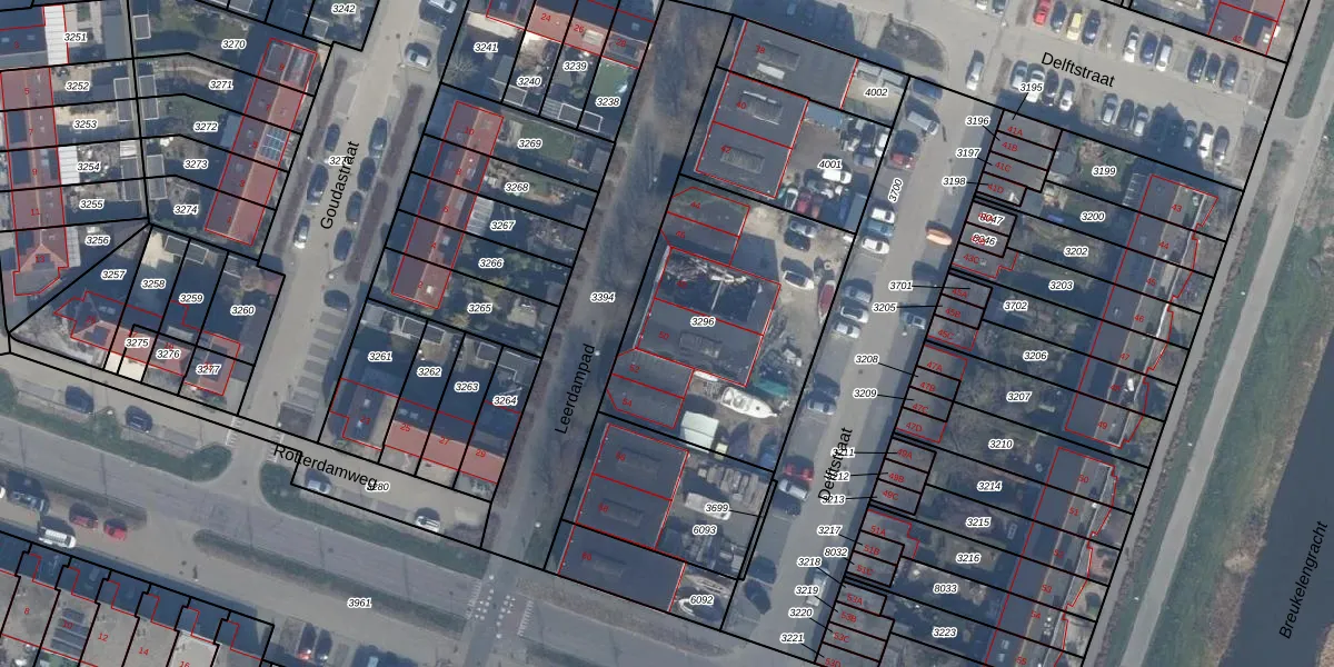 Het perceel waarop Delftstraat 50 staat heeft een oppervlakte van 1055 m². Dit is een zeer groot perceel. De perceeloppervlakte wordt geregistreerd door het Kadaster. Gedetailleerde informatie over de maten van dit perceel kunt u vinden in het rapport Kadastrale kaart met maatvoering van Delftstraat 50.