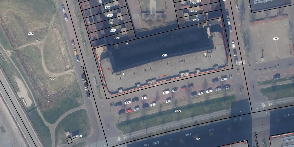 Het perceel waarop Denemarkenstraat 24 staat heeft een oppervlakte van 3108 m². Dit is een zeer groot perceel. De perceeloppervlakte wordt geregistreerd door het Kadaster. Gedetailleerde informatie over de maten van dit perceel kunt u vinden in het rapport Kadastrale kaart met maatvoering van Denemarkenstraat 24.
