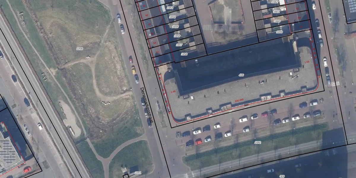 Het perceel waarop Denemarkenstraat 28 staat heeft een oppervlakte van 3108 m². Dit is een zeer groot perceel. De perceeloppervlakte wordt geregistreerd door het Kadaster. Gedetailleerde informatie over de maten van dit perceel kunt u vinden in het rapport Kadastrale kaart met maatvoering van Denemarkenstraat 28.