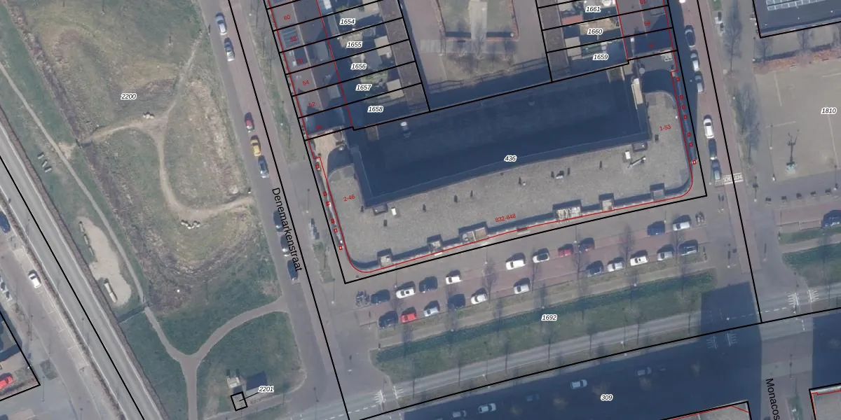 Het perceel waarop Denemarkenstraat 34 staat heeft een oppervlakte van 3108 m². Dit is een zeer groot perceel. De perceeloppervlakte wordt geregistreerd door het Kadaster. Gedetailleerde informatie over de maten van dit perceel kunt u vinden in het rapport Kadastrale kaart met maatvoering van Denemarkenstraat 34.