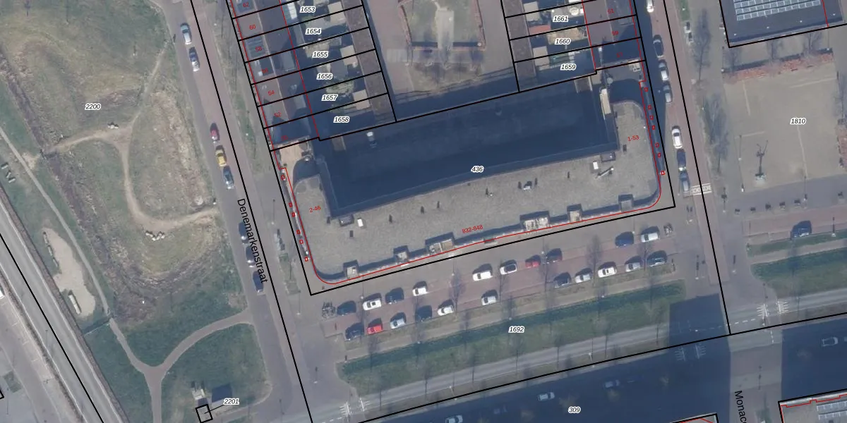 Het perceel waarop Denemarkenstraat 36 staat heeft een oppervlakte van 3108 m². Dit is een zeer groot perceel. De perceeloppervlakte wordt geregistreerd door het Kadaster. Gedetailleerde informatie over de maten van dit perceel kunt u vinden in het rapport Kadastrale kaart met maatvoering van Denemarkenstraat 36.