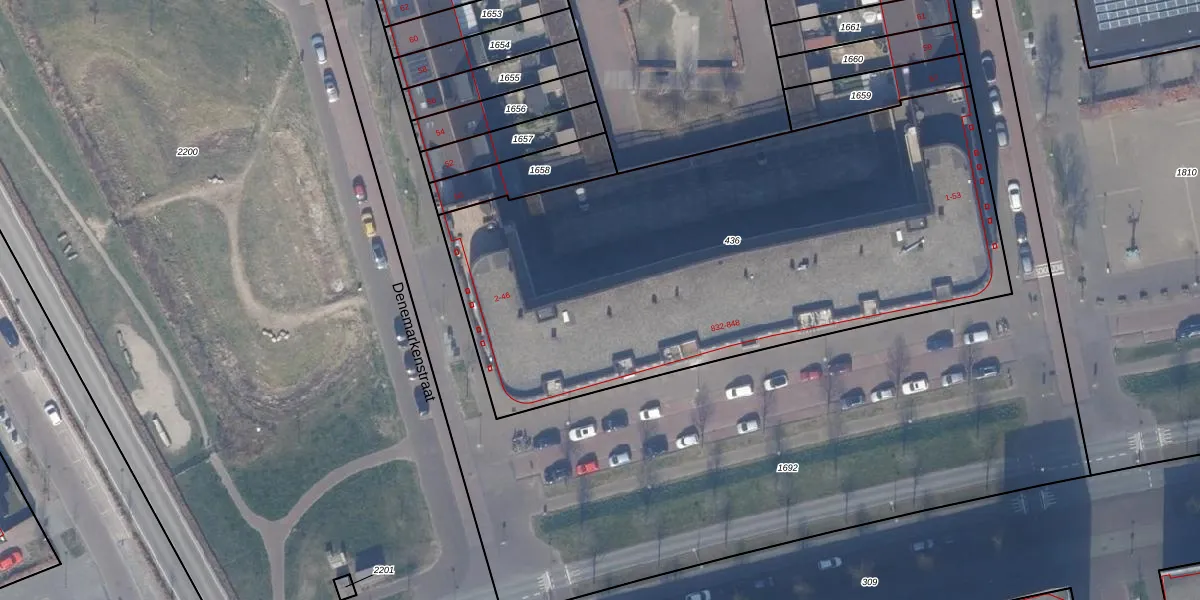 Het perceel waarop Denemarkenstraat 44 staat heeft een oppervlakte van 3108 m². Dit is een zeer groot perceel. De perceeloppervlakte wordt geregistreerd door het Kadaster. Gedetailleerde informatie over de maten van dit perceel kunt u vinden in het rapport Kadastrale kaart met maatvoering van Denemarkenstraat 44.