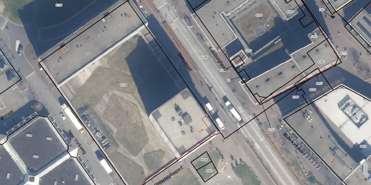 Het perceel waarop Detroitpad 10 staat heeft een oppervlakte van 5015 m². Dit is een zeer groot perceel. De perceeloppervlakte wordt geregistreerd door het Kadaster. Gedetailleerde informatie over de maten van dit perceel kunt u vinden in het rapport Kadastrale kaart met maatvoering van Detroitpad 10.