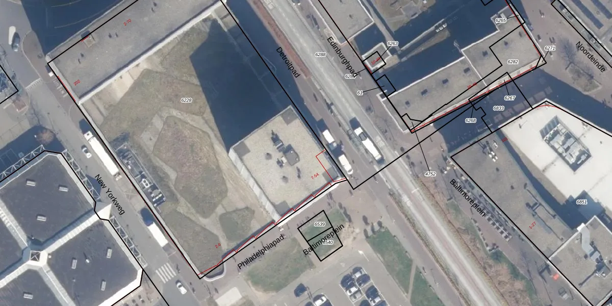 Het perceel waarop Detroitpad 13 staat heeft een oppervlakte van 5015 m². Dit is een zeer groot perceel. De perceeloppervlakte wordt geregistreerd door het Kadaster. Gedetailleerde informatie over de maten van dit perceel kunt u vinden in het rapport Kadastrale kaart met maatvoering van Detroitpad 13.