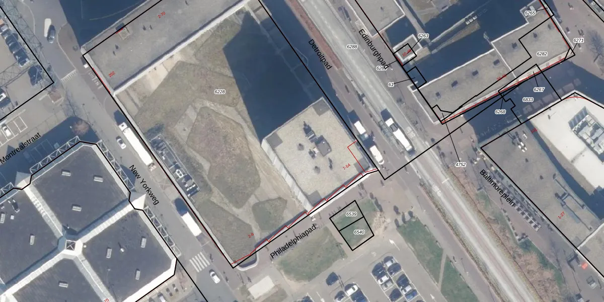 Het perceel waarop Detroitpad 32 staat heeft een oppervlakte van 5015 m². Dit is een zeer groot perceel. De perceeloppervlakte wordt geregistreerd door het Kadaster. Gedetailleerde informatie over de maten van dit perceel kunt u vinden in het rapport Kadastrale kaart met maatvoering van Detroitpad 32.
