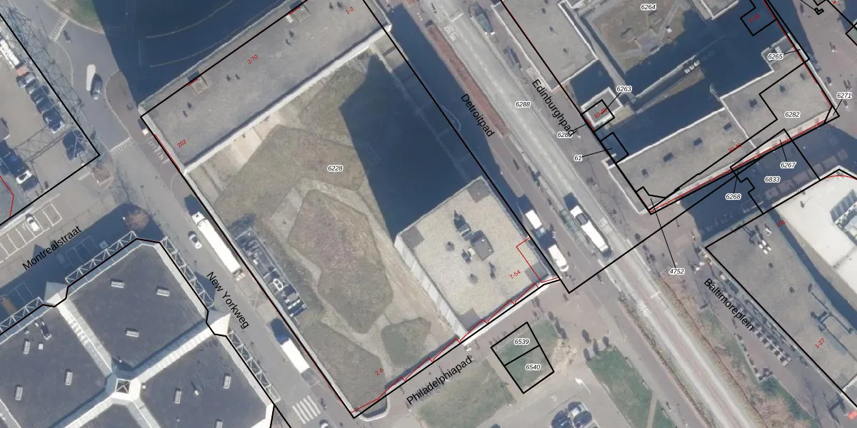 Het perceel waarop Detroitpad 34 staat heeft een oppervlakte van 5015 m². Dit is een zeer groot perceel. De perceeloppervlakte wordt geregistreerd door het Kadaster. Gedetailleerde informatie over de maten van dit perceel kunt u vinden in het rapport Kadastrale kaart met maatvoering van Detroitpad 34.