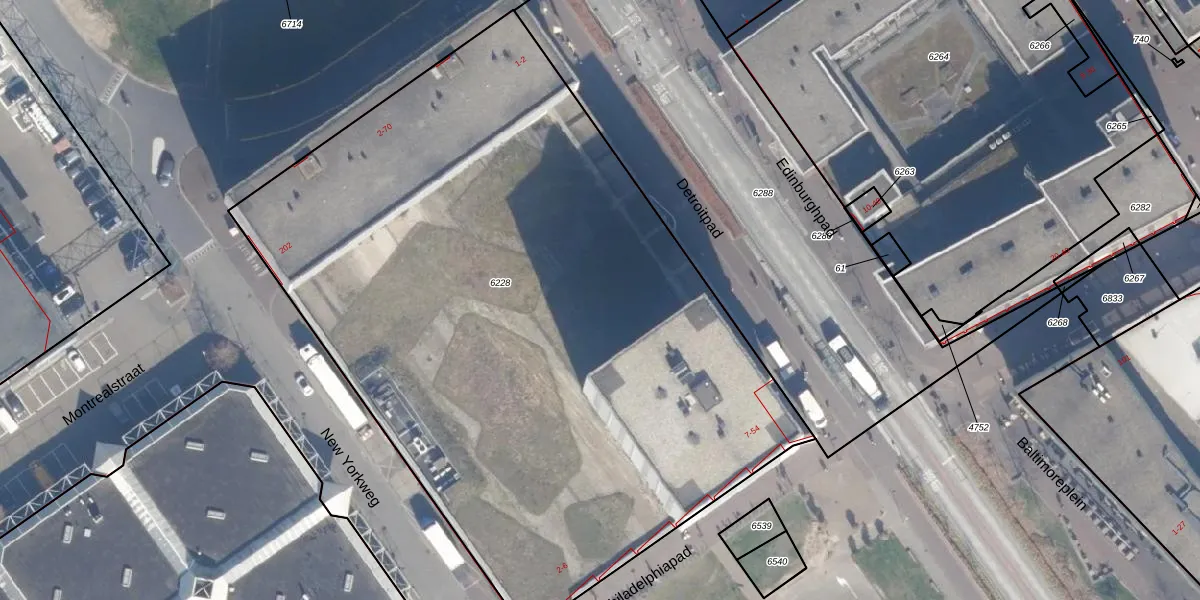 Het perceel waarop Detroitpad 36 staat heeft een oppervlakte van 5015 m². Dit is een zeer groot perceel. De perceeloppervlakte wordt geregistreerd door het Kadaster. Gedetailleerde informatie over de maten van dit perceel kunt u vinden in het rapport Kadastrale kaart met maatvoering van Detroitpad 36.