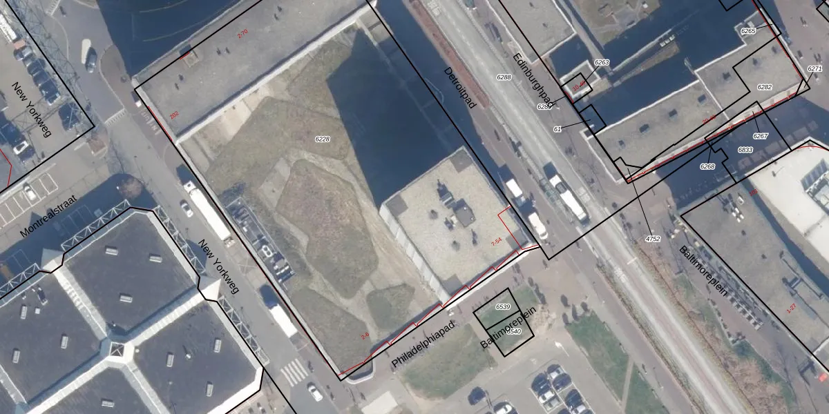 Het perceel waarop Detroitpad 39 staat heeft een oppervlakte van 5015 m². Dit is een zeer groot perceel. De perceeloppervlakte wordt geregistreerd door het Kadaster. Gedetailleerde informatie over de maten van dit perceel kunt u vinden in het rapport Kadastrale kaart met maatvoering van Detroitpad 39.