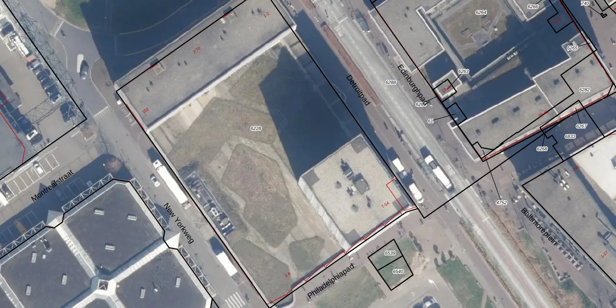 Het perceel waarop Detroitpad 41 staat heeft een oppervlakte van 5015 m². Dit is een zeer groot perceel. De perceeloppervlakte wordt geregistreerd door het Kadaster. Gedetailleerde informatie over de maten van dit perceel kunt u vinden in het rapport Kadastrale kaart met maatvoering van Detroitpad 41.