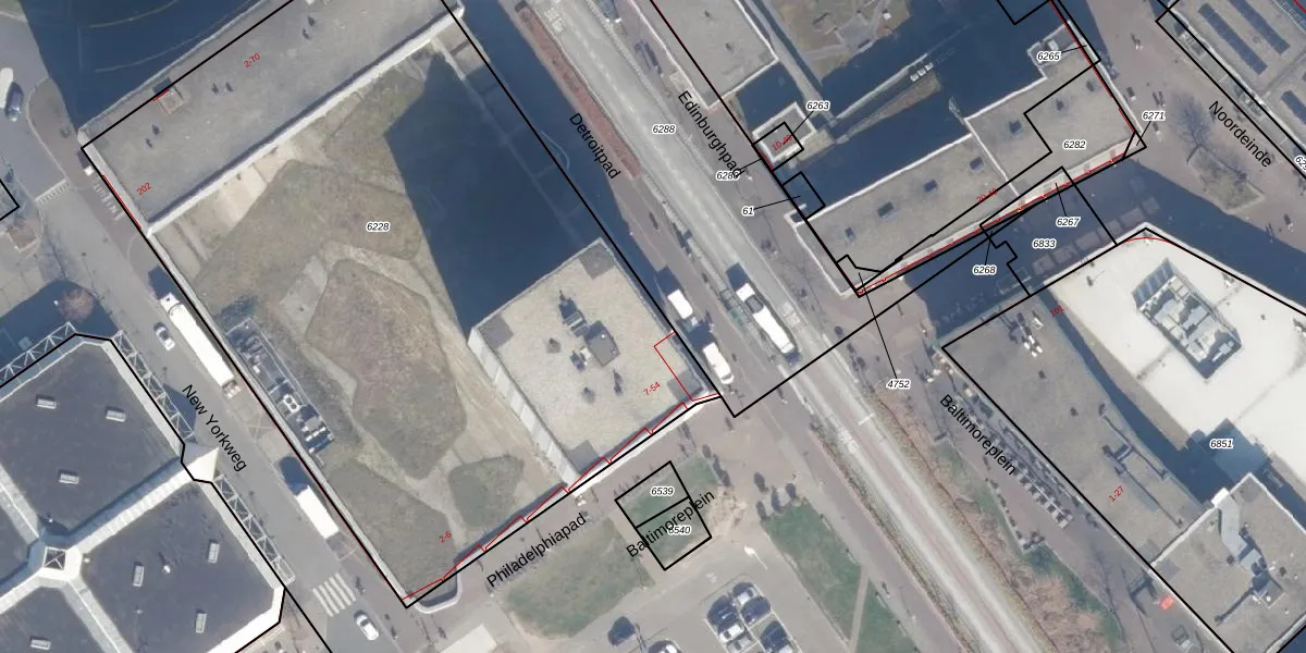 Het perceel waarop Detroitpad 7 staat heeft een oppervlakte van 5015 m². Dit is een zeer groot perceel. De perceeloppervlakte wordt geregistreerd door het Kadaster. Gedetailleerde informatie over de maten van dit perceel kunt u vinden in het rapport Kadastrale kaart met maatvoering van Detroitpad 7.