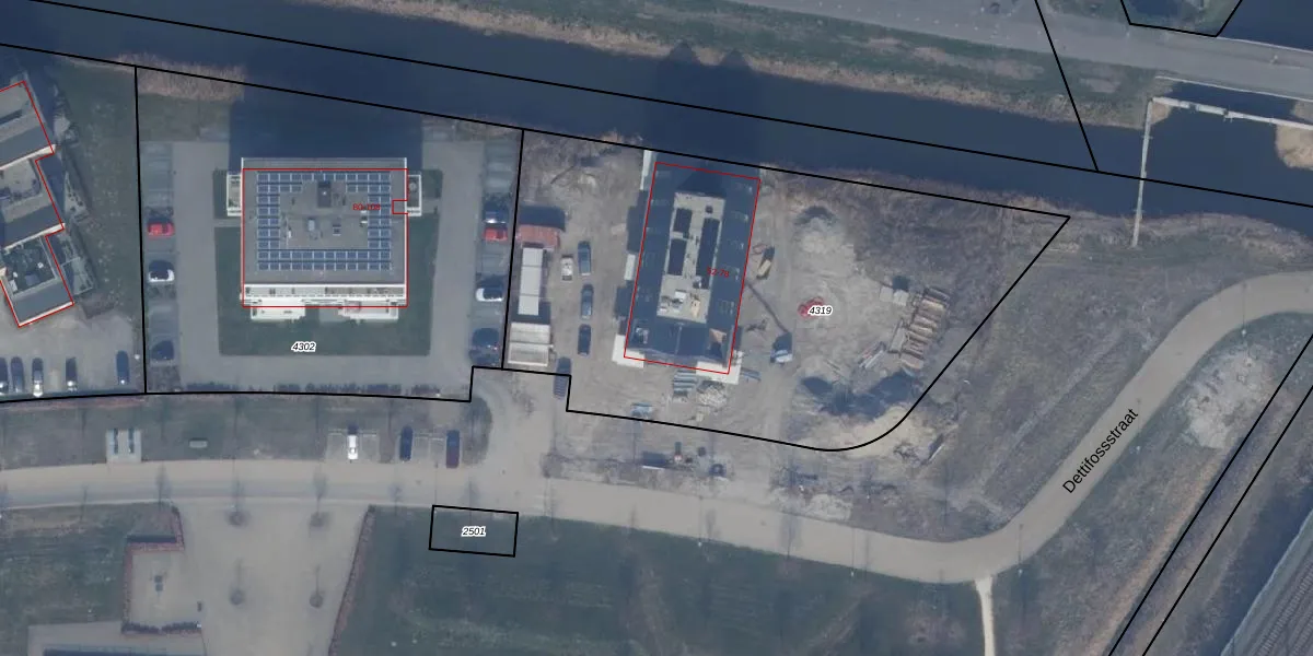 Dettifossstraat 54 is gelegen op kadastraal perceel AMR04W4319. Deze kadastrale aanduiding is uniek en wordt gebruikt door het Kadaster om eigendomsrechten en andere zakelijke rechten vast te leggen. Het perceel maakt onderdeel uit van de kadastrale gemeente Almere.