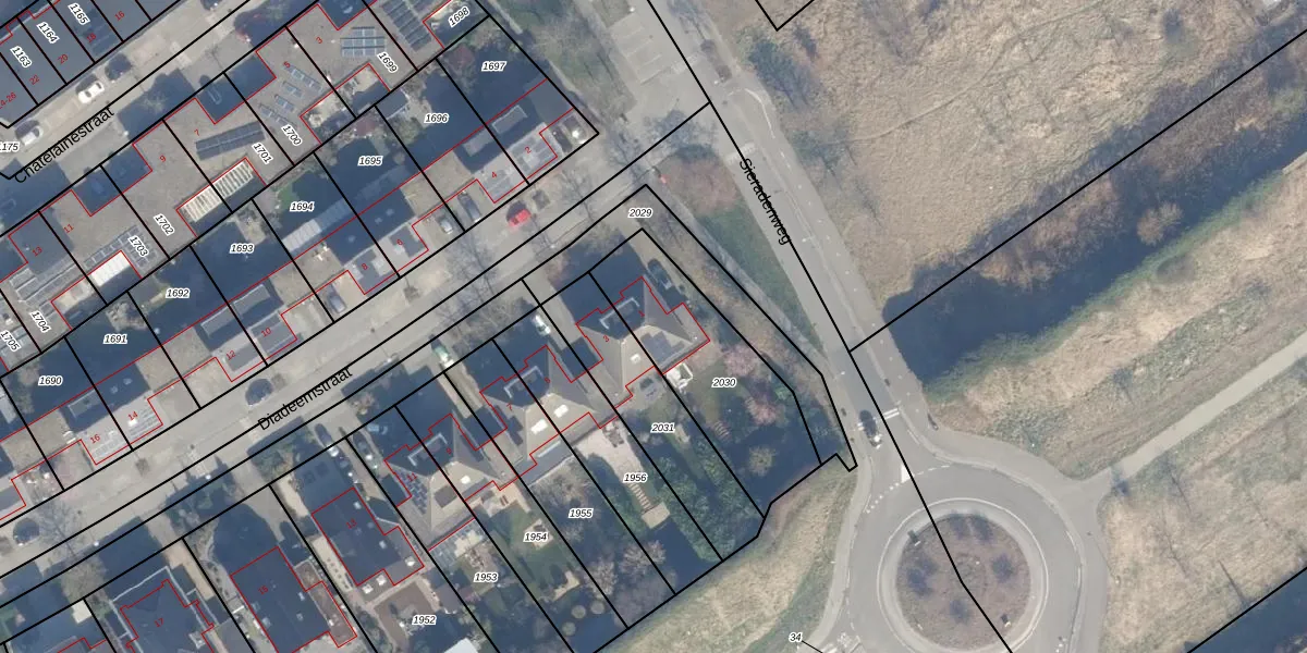 Het perceel waarop Diadeemstraat 1 staat heeft een oppervlakte van 583 m². Dit is een groot perceel. De perceeloppervlakte wordt geregistreerd door het Kadaster. Gedetailleerde informatie over de maten van dit perceel kunt u vinden in het rapport Kadastrale kaart met maatvoering van Diadeemstraat 1.