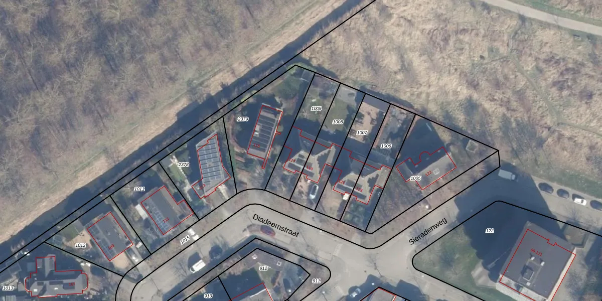 Het perceel waarop Diadeemstraat 117 staat heeft een oppervlakte van 383 m². Dit is een groot perceel. De perceeloppervlakte wordt geregistreerd door het Kadaster. Gedetailleerde informatie over de maten van dit perceel kunt u vinden in het rapport Kadastrale kaart met maatvoering van Diadeemstraat 117.