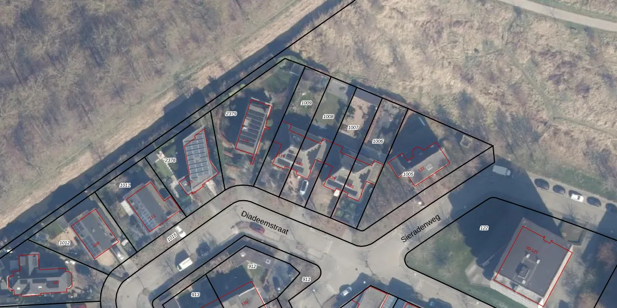 Het perceel waarop Diadeemstraat 119 staat heeft een oppervlakte van 383 m². Dit is een groot perceel. De perceeloppervlakte wordt geregistreerd door het Kadaster. Gedetailleerde informatie over de maten van dit perceel kunt u vinden in het rapport Kadastrale kaart met maatvoering van Diadeemstraat 119.