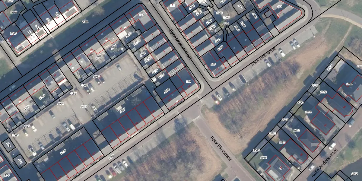 Het perceel waarop Dick Bosstraat 143 staat heeft een oppervlakte van 178 m². Dit is een middelgroot perceel. De perceeloppervlakte wordt geregistreerd door het Kadaster. Gedetailleerde informatie over de maten van dit perceel kunt u vinden in het rapport Kadastrale kaart met maatvoering van Dick Bosstraat 143.