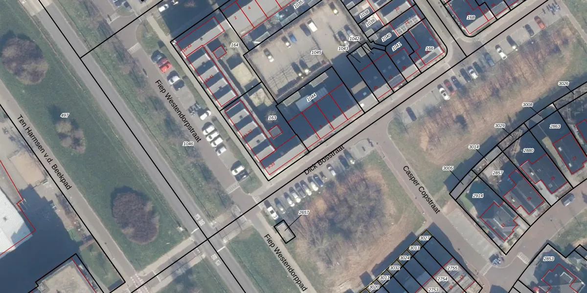 Het perceel waarop Dick Bosstraat 33 staat heeft een oppervlakte van 498 m². Dit is een groot perceel. De perceeloppervlakte wordt geregistreerd door het Kadaster. Gedetailleerde informatie over de maten van dit perceel kunt u vinden in het rapport Kadastrale kaart met maatvoering van Dick Bosstraat 33.