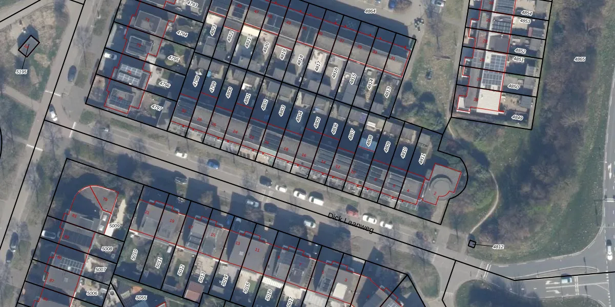 Gebruik de zoekbalk of klik op een perceel voor informatie over de adressen binnen dit perceel.