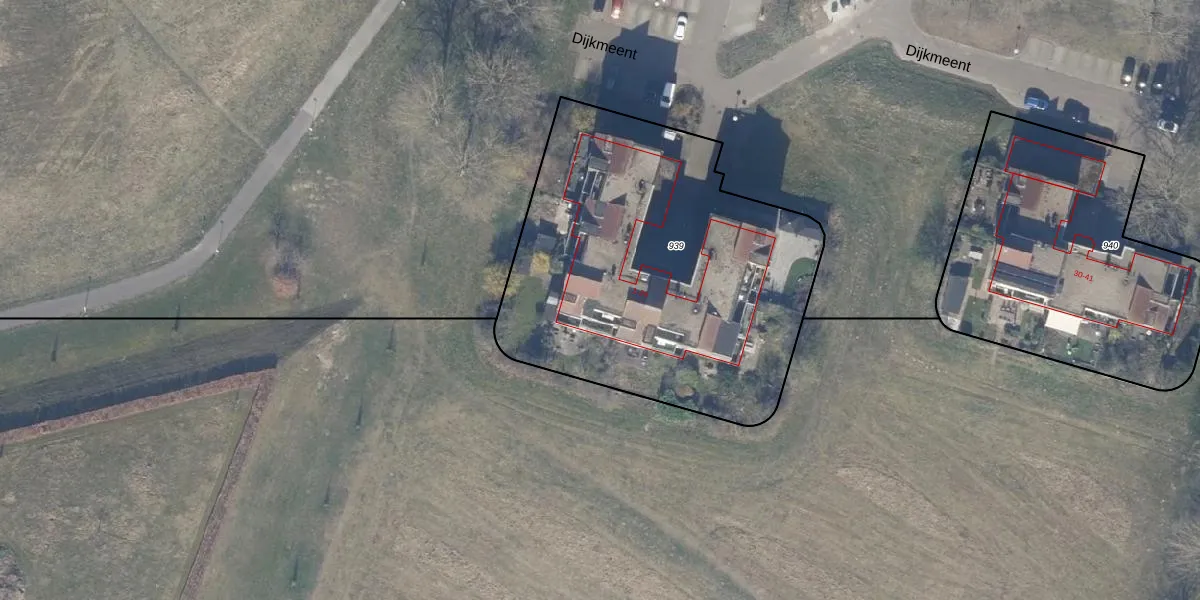 Het perceel waarop Dijkmeent 27 staat heeft een oppervlakte van 2011 m². Dit is een zeer groot perceel. De perceeloppervlakte wordt geregistreerd door het Kadaster. Gedetailleerde informatie over de maten van dit perceel kunt u vinden in het rapport Kadastrale kaart met maatvoering van Dijkmeent 27.