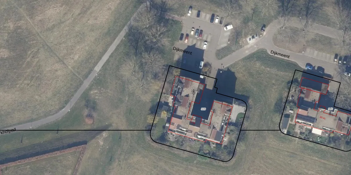 Het perceel waarop Dijkmeent 29 staat heeft een oppervlakte van 2011 m². Dit is een zeer groot perceel. De perceeloppervlakte wordt geregistreerd door het Kadaster. Gedetailleerde informatie over de maten van dit perceel kunt u vinden in het rapport Kadastrale kaart met maatvoering van Dijkmeent 29.