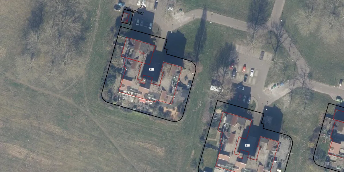 Het perceel waarop Dijkmeent 60 staat heeft een oppervlakte van 2026 m². Dit is een zeer groot perceel. De perceeloppervlakte wordt geregistreerd door het Kadaster. Gedetailleerde informatie over de maten van dit perceel kunt u vinden in het rapport Kadastrale kaart met maatvoering van Dijkmeent 60.