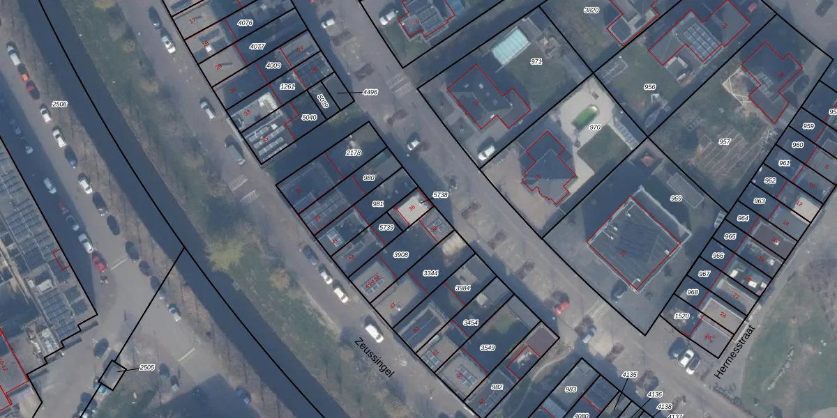 Gebruik de zoekbalk of klik op een perceel voor informatie over de adressen binnen dit perceel.