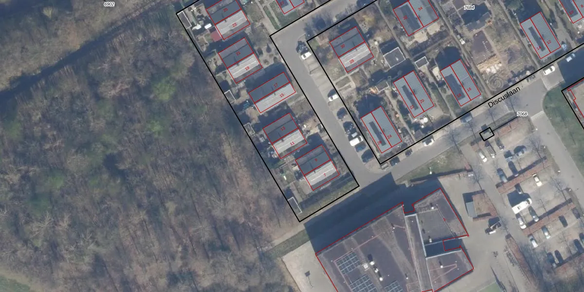 Het perceel waarop Discuslaan 11 staat heeft een oppervlakte van 6845 m². Dit is een zeer groot perceel. De perceeloppervlakte wordt geregistreerd door het Kadaster. Gedetailleerde informatie over de maten van dit perceel kunt u vinden in het rapport Kadastrale kaart met maatvoering van Discuslaan 11.