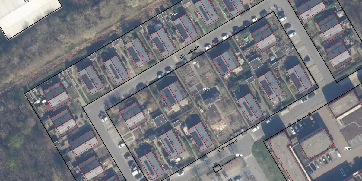 Het perceel waarop Discuslaan 34 staat heeft een oppervlakte van 5270 m². Dit is een zeer groot perceel. De perceeloppervlakte wordt geregistreerd door het Kadaster. Gedetailleerde informatie over de maten van dit perceel kunt u vinden in het rapport Kadastrale kaart met maatvoering van Discuslaan 34.