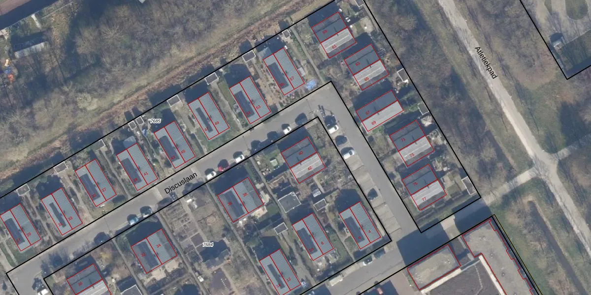 Discuslaan 40 is gelegen op kadastraal perceel AMR04P7684. Deze kadastrale aanduiding is uniek en wordt gebruikt door het Kadaster om eigendomsrechten en andere zakelijke rechten vast te leggen. Het perceel maakt onderdeel uit van de kadastrale gemeente Almere.