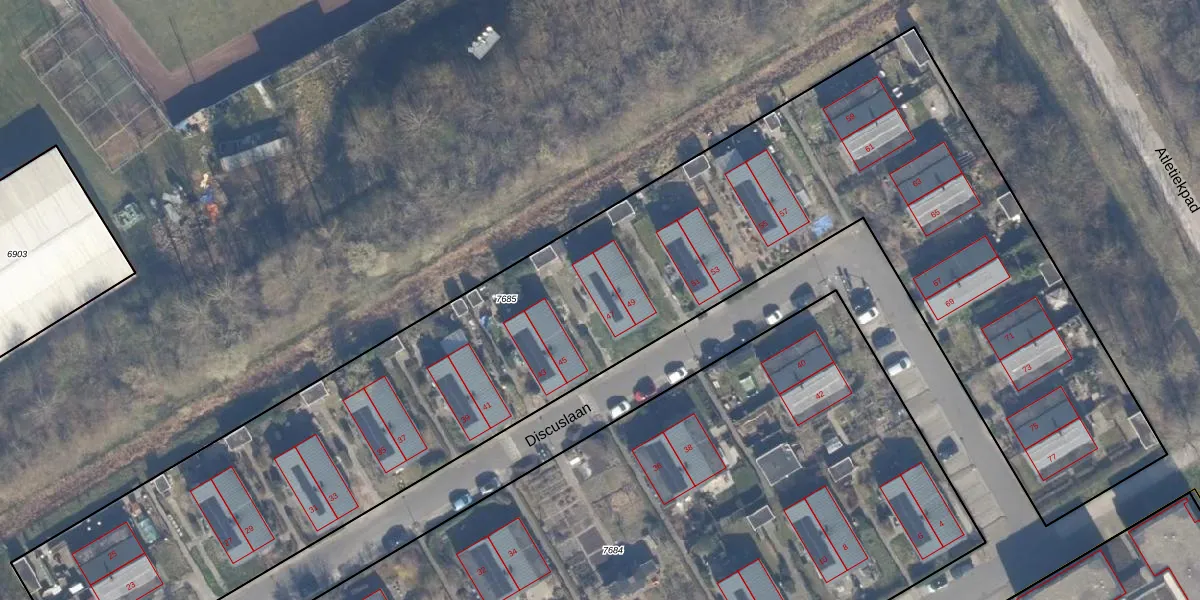 Het perceel waarop Discuslaan 47 staat heeft een oppervlakte van 6845 m². Dit is een zeer groot perceel. De perceeloppervlakte wordt geregistreerd door het Kadaster. Gedetailleerde informatie over de maten van dit perceel kunt u vinden in het rapport Kadastrale kaart met maatvoering van Discuslaan 47.