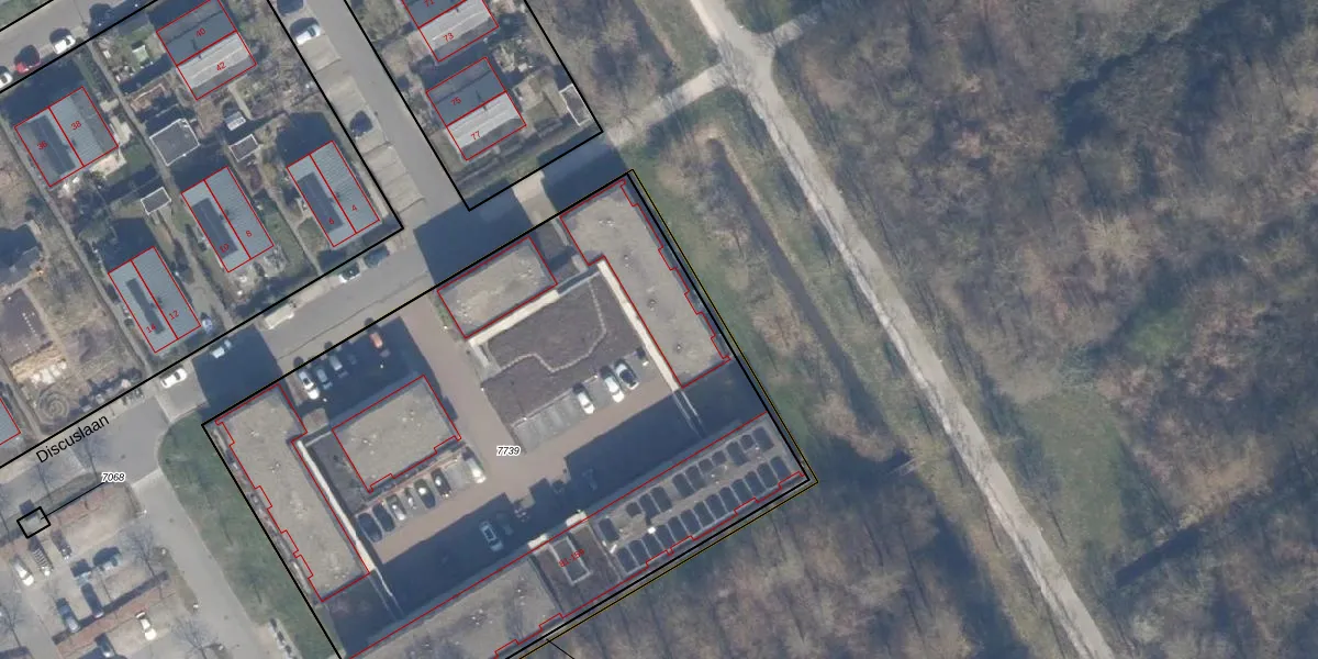 Het perceel waarop Discuslaan 89 staat heeft een oppervlakte van 4055 m². Dit is een zeer groot perceel. De perceeloppervlakte wordt geregistreerd door het Kadaster. Gedetailleerde informatie over de maten van dit perceel kunt u vinden in het rapport Kadastrale kaart met maatvoering van Discuslaan 89.