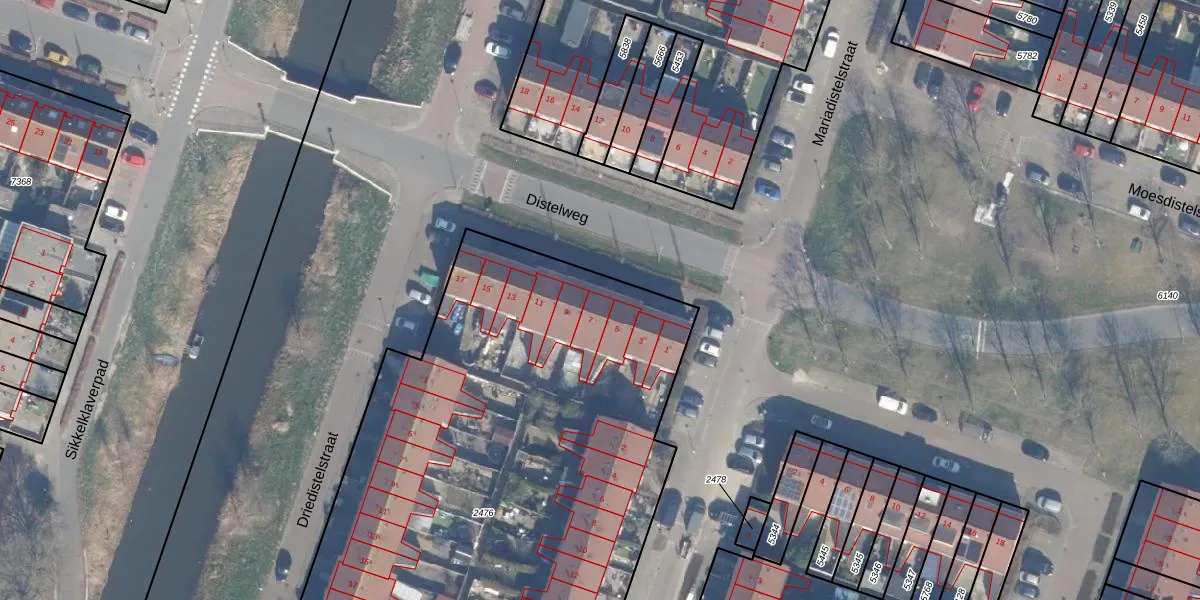 Distelweg 7 is gelegen op kadastraal perceel AMR04O2476. Deze kadastrale aanduiding is uniek en wordt gebruikt door het Kadaster om eigendomsrechten en andere zakelijke rechten vast te leggen. Het perceel maakt onderdeel uit van de kadastrale gemeente Almere.