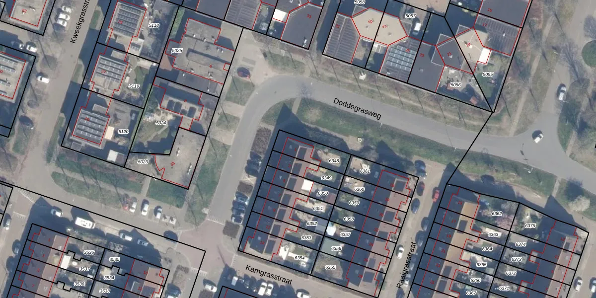 Gebruik de zoekbalk of klik op een perceel voor informatie over de adressen binnen dit perceel.