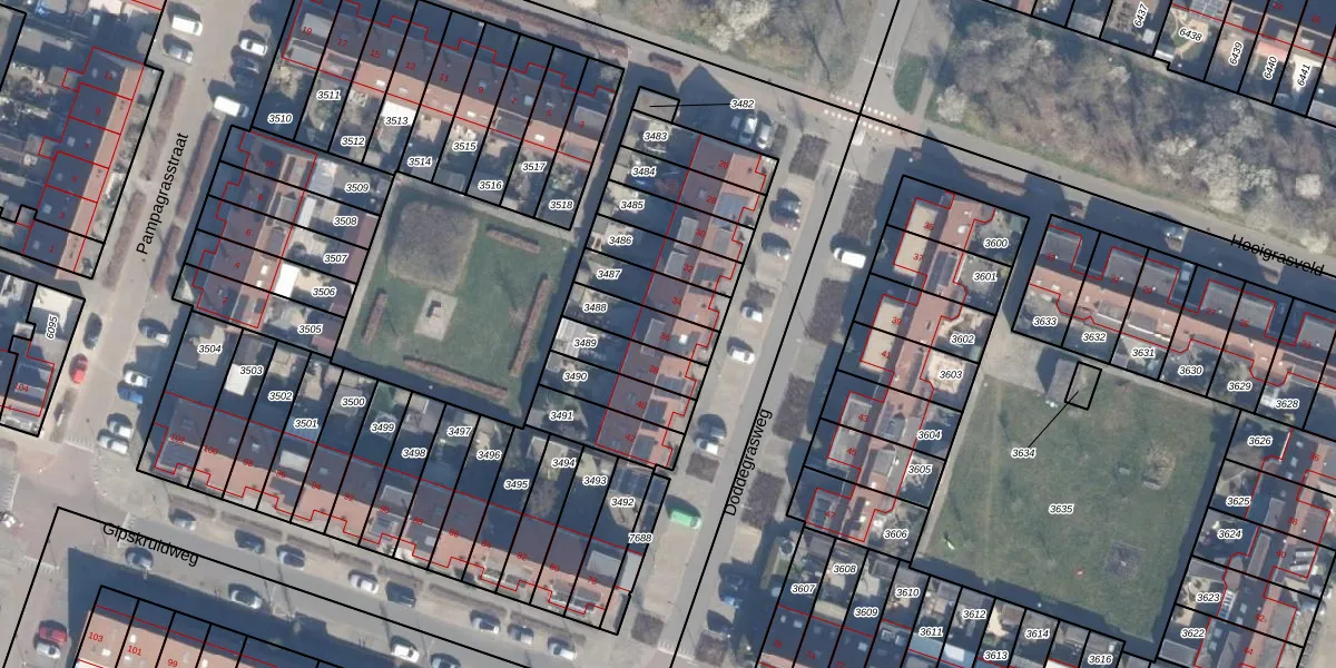 Doddegrasweg 36 is gelegen op kadastraal perceel AMR04O3488. Deze kadastrale aanduiding is uniek en wordt gebruikt door het Kadaster om eigendomsrechten en andere zakelijke rechten vast te leggen. Het perceel maakt onderdeel uit van de kadastrale gemeente Almere.