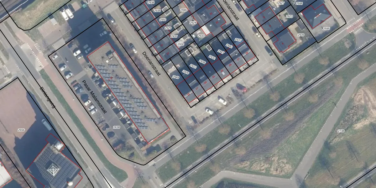 Gebruik de zoekbalk of klik op een perceel voor informatie over de adressen binnen dit perceel.
