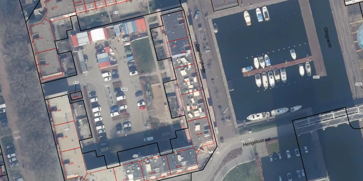 Het perceel waarop Doesburgkade 20 staat heeft een oppervlakte van 3424 m². Dit is een zeer groot perceel. De perceeloppervlakte wordt geregistreerd door het Kadaster. Gedetailleerde informatie over de maten van dit perceel kunt u vinden in het rapport Kadastrale kaart met maatvoering van Doesburgkade 20.