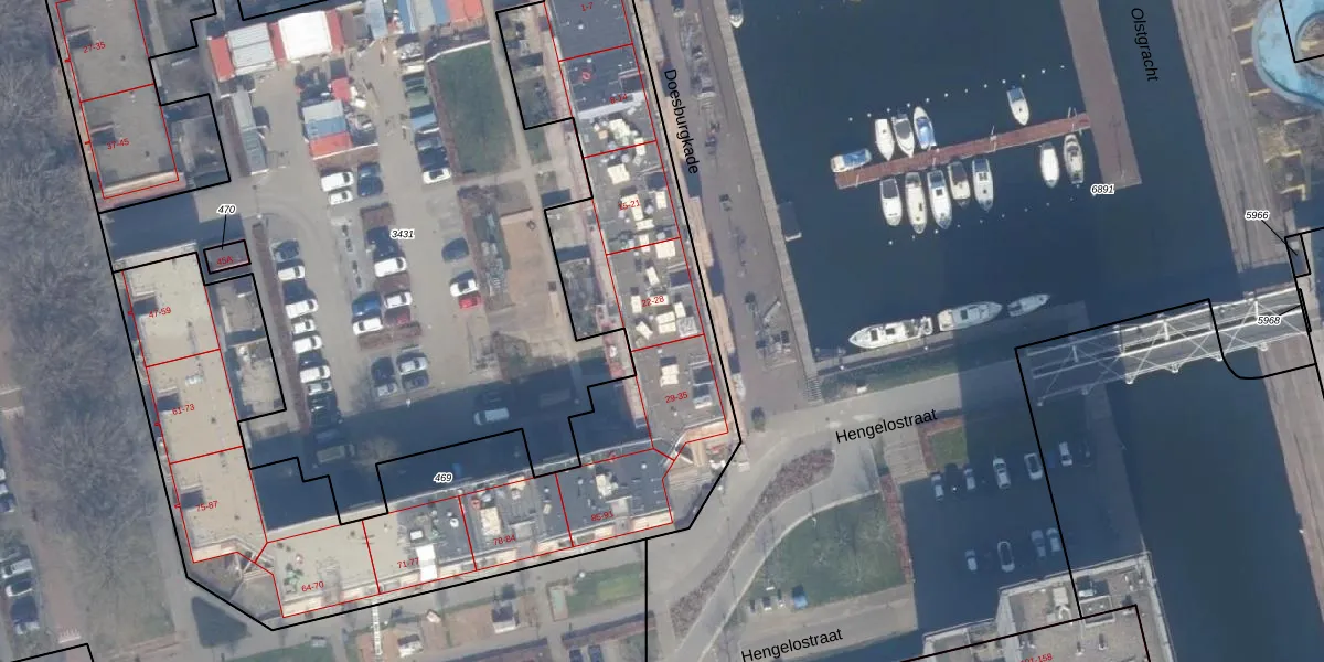 Het perceel waarop Doesburgkade 26 staat heeft een oppervlakte van 3424 m². Dit is een zeer groot perceel. De perceeloppervlakte wordt geregistreerd door het Kadaster. Gedetailleerde informatie over de maten van dit perceel kunt u vinden in het rapport Kadastrale kaart met maatvoering van Doesburgkade 26.