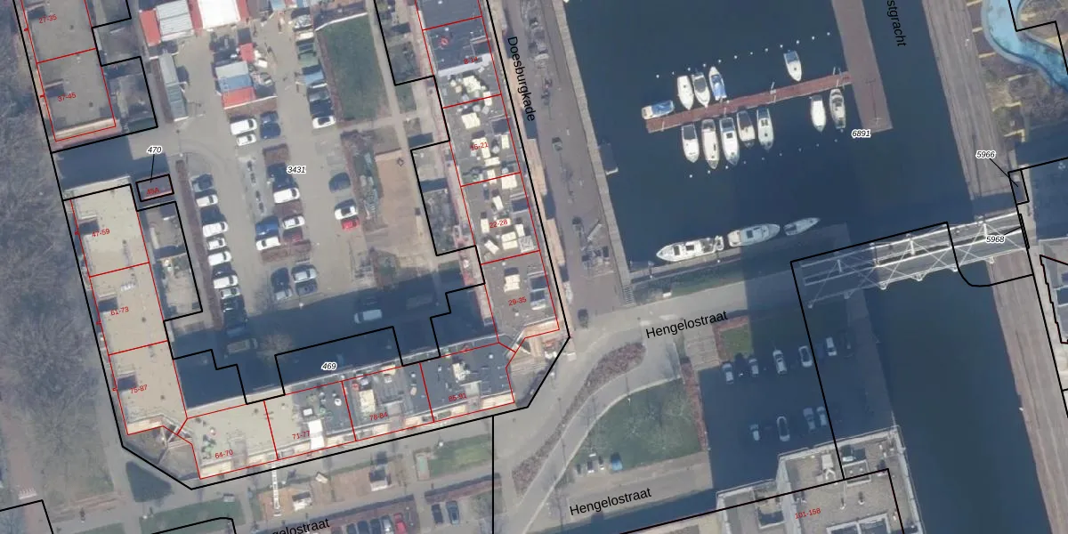Het perceel waarop Doesburgkade 31 staat heeft een oppervlakte van 3424 m². Dit is een zeer groot perceel. De perceeloppervlakte wordt geregistreerd door het Kadaster. Gedetailleerde informatie over de maten van dit perceel kunt u vinden in het rapport Kadastrale kaart met maatvoering van Doesburgkade 31.