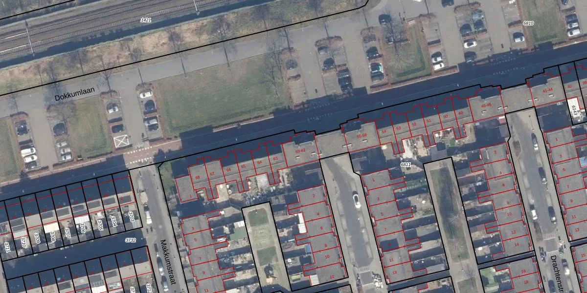Het perceel waarop Dokkumlaan 62 staat heeft een oppervlakte van 7740 m². Dit is een zeer groot perceel. De perceeloppervlakte wordt geregistreerd door het Kadaster. Gedetailleerde informatie over de maten van dit perceel kunt u vinden in het rapport Kadastrale kaart met maatvoering van Dokkumlaan 62.