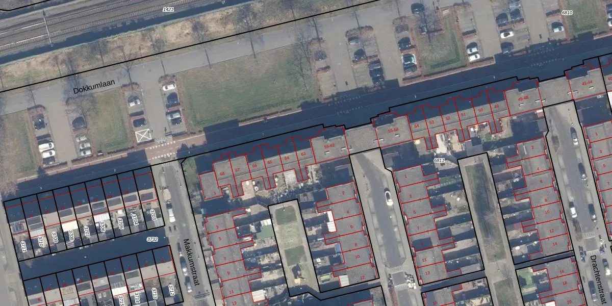Het perceel waarop Dokkumlaan 63 staat heeft een oppervlakte van 7740 m². Dit is een zeer groot perceel. De perceeloppervlakte wordt geregistreerd door het Kadaster. Gedetailleerde informatie over de maten van dit perceel kunt u vinden in het rapport Kadastrale kaart met maatvoering van Dokkumlaan 63.